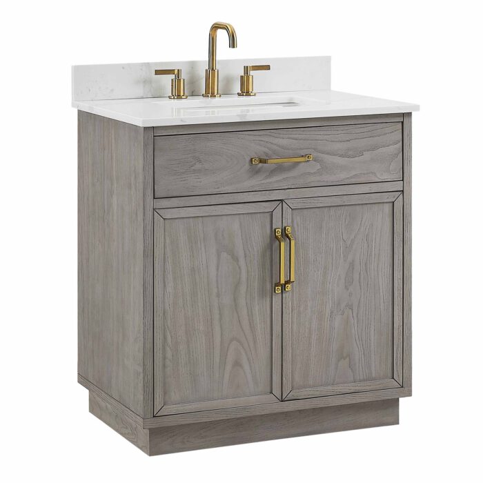 Dover 30″ Vanity in Elm Finish with Calacatta White Quartz Top