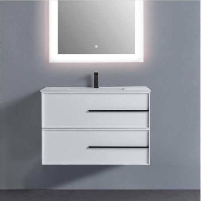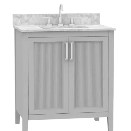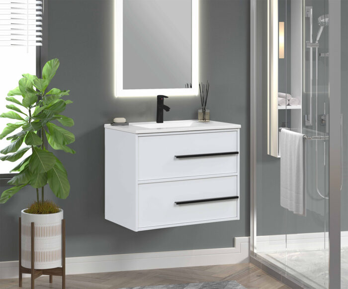 Ibiza 30″ Floating Vanity in RTF White Finish and Crushed Marble Top