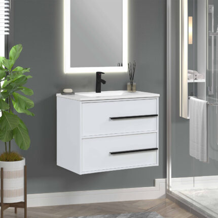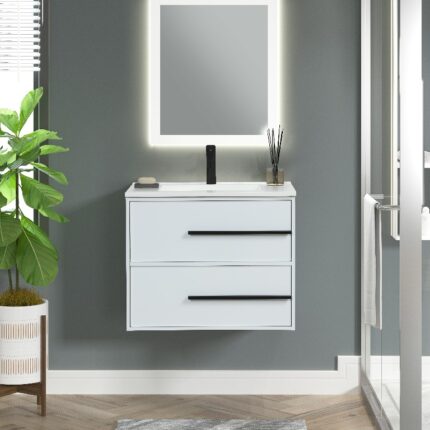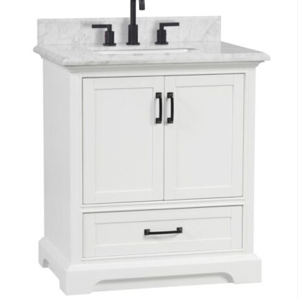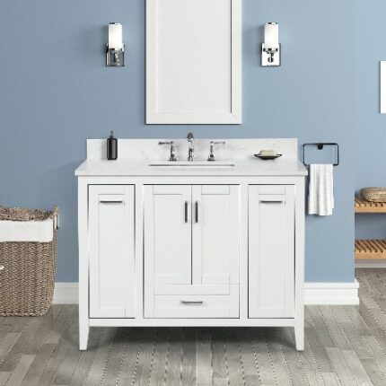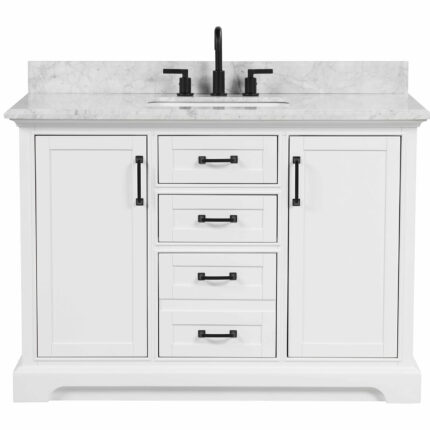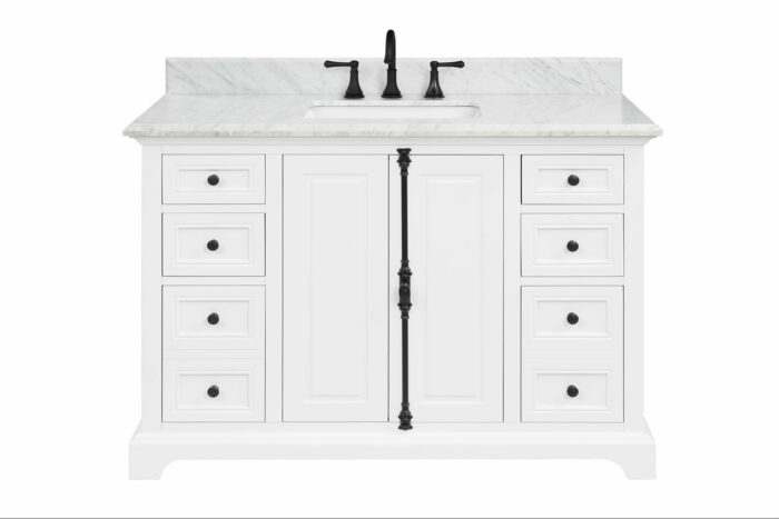 Iris 48″ Vanity Combo in Dove White Finish with Italian Carrara Marble Top