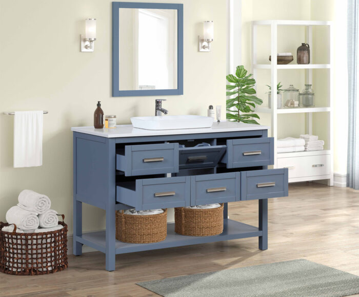 Jordy 48″ Vanity in Ocean Blue with White Crushed Marble Top