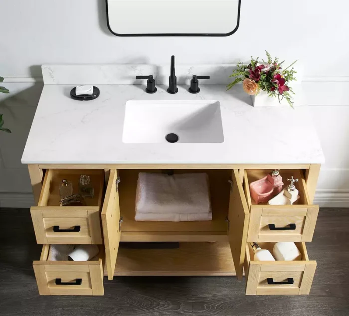 Louvre 48″ Vanity Cabinet Only in Natural Oak