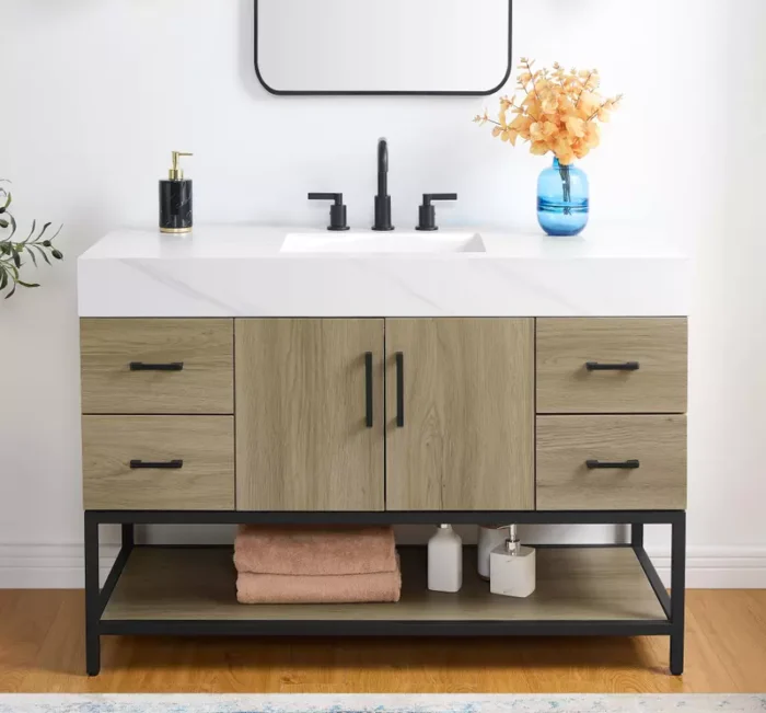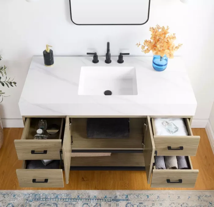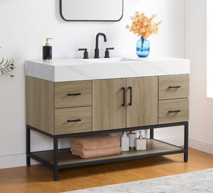 Uran 48″ Vanity Combo in Dark Oak with Calacatta Sintered Stone Top