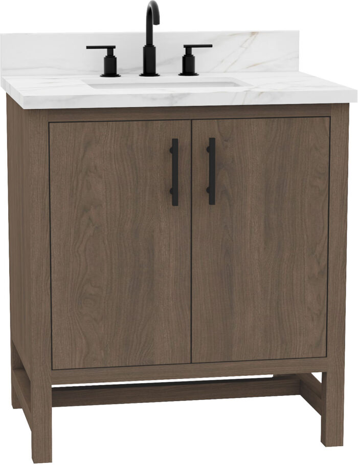 Sonoma 30″ Vanity Combo in Antique Elm Finish with Calacatta Sintered Stone Top