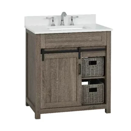 Dover 30″ Vanity in Elm Finish with Calacatta White Quartz Top