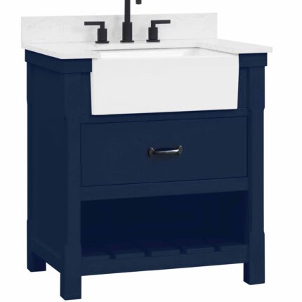Farmstead 30″ Navy Blue Vanity Combo in Paint Finish with Italian Carrara Marble Top