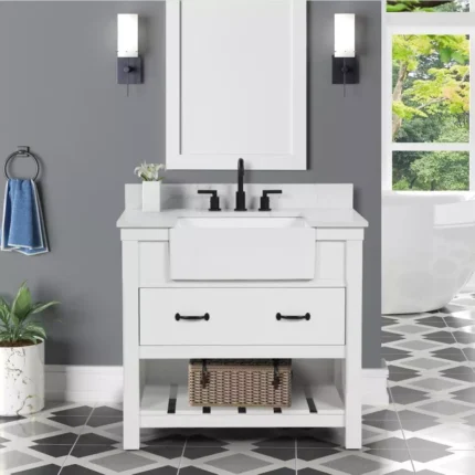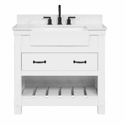 Farmstead 36″ White Vanity Combo in Paint Finish with Italian Carrara Marble Top