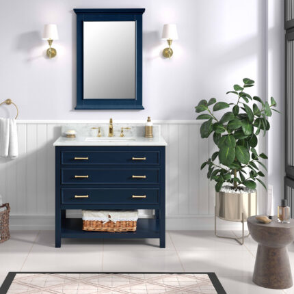 Tribeca Premium 36″ Vanity Combo in Navy Blue Finish with Italian Carrara Marble Top